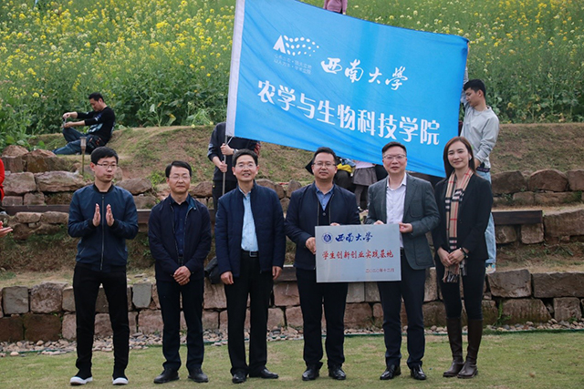 学生创新创业实践基地”授牌仪式在田园牧歌小镇举行。学院院长吕典秋、副院长张建奎、教学工作办公室负责人及2019级植物科学与技术专业全体学生参加。蓝城集团总裁许峰、蓝城两江项目总经理陆小芊、蓝城两江项目产业部经理马森涛出席授牌仪式。