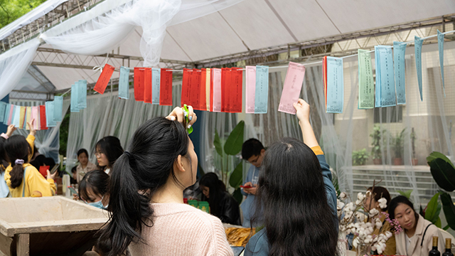 培养一支懂农业、爱农村、爱农民的“三农”工作队伍为乡村振兴战略提供人才支撑,是学院人才培养的目标。作为新时代的农科人才,不仅可以扎根土地与植物对话,还可以饱读诗书,出口成章。“背负青天面朝土”,“深云种早禾”,一张张写着农事谜语的彩色纸条蕴含着文字与自然的智慧结晶,吸引了不少同学的驻足观望和深入思考。也有不少小朋友被谜语所吸引,面对小朋友好奇提问,奈飞工厂