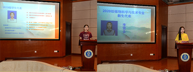 2020级新生代表李雪含同学在发言中表示,要像袁隆平院士、孟安明院士、李加纳教授等优秀、杰出学长和前辈一样,“植”播天下,不负青春大战一场,为社会和国家献出自己的力量。