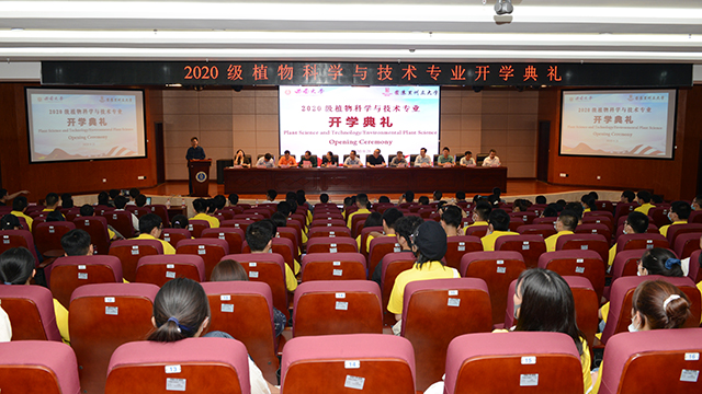 9月21日,2020级植物科学与技术专业开学典礼在隆平楼404报告厅隆重举行。学院党委书记阳义健、院长吕典秋、党委副书记郑莉佳、副院长张建奎、副院长卢坤,学院博士生导师代表、教师代表,以及团委书记许莹竹、2020级辅导员和班主任出席典礼。开学典礼由张建奎副院长主持。