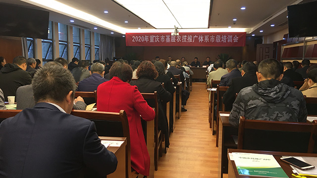 承办的2020年重庆市基层农技推广体系市级培训会(第一期)在北碚坤飞酒店圆满开班。重庆市农业技术推广总站站长曾卓华、推广研究员唐光泽,学院党委书记阳义健、院长吕典秋出席开班仪式。仪式由学院副院长卢坤主持,来自重庆市各区县农技推广体系的114名学员参加。