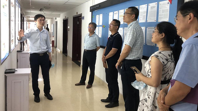 从隆平楼出来后,阳书记和吕院长一行先后来到37教学楼,参观了学院科研共享平台。平台负责人刘志斋介绍平台的功能定位和目前现状后,吕典秋院长详细询问了平台目前纳入学校大型仪器共享网络相关仪器的运行情况后,提出加强日常管理,有效提升仪器使用效率为学院及学校学科建设服好务。
