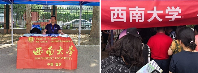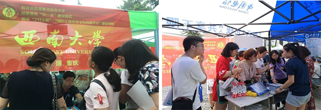 6月24日-25日,重庆市第十五届普通高校招生志愿填报咨询会在南坪国际会展中心举办,学校招生就业处招生管理科科长朱高峰、学院外事秘书刘志斋、数学与统计学院辅导员张熠、荣昌校区动物科学学院辅导员贺玲一行4人作为我校招生代表参加咨询会。