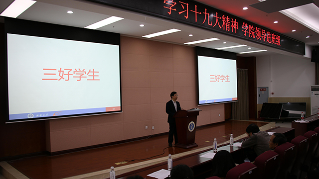 院长何光华主讲,学院党委书记赵子华、副院长唐章林、张建奎等领导、系主任、17级辅导员和各班主任及17级全体同学参与了本次学习。