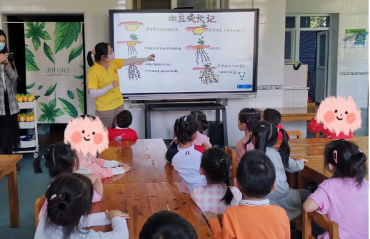 实验幼儿园。一部分马铃薯赠送给幼儿园食堂为小朋友食用,另一部分用来作为课堂教学使用。卢坤一行受到幼儿园老师和小朋友的热烈欢迎,随后马铃薯团队党员梁锐老师为小朋友讲解马铃薯的相关知识和趣味实验,引导小朋友养成爱惜粮食、热爱劳动的中华民族传统美德。