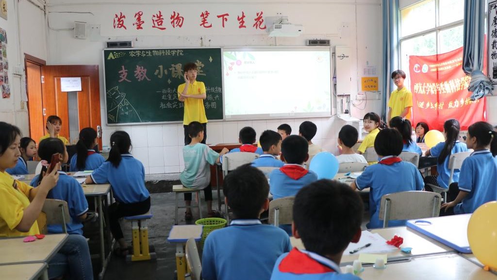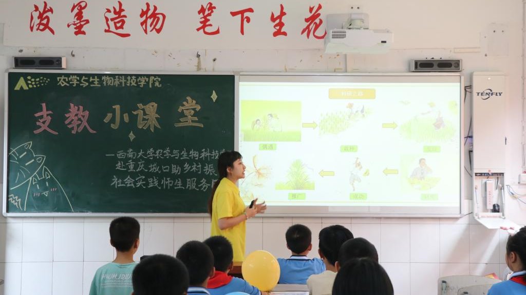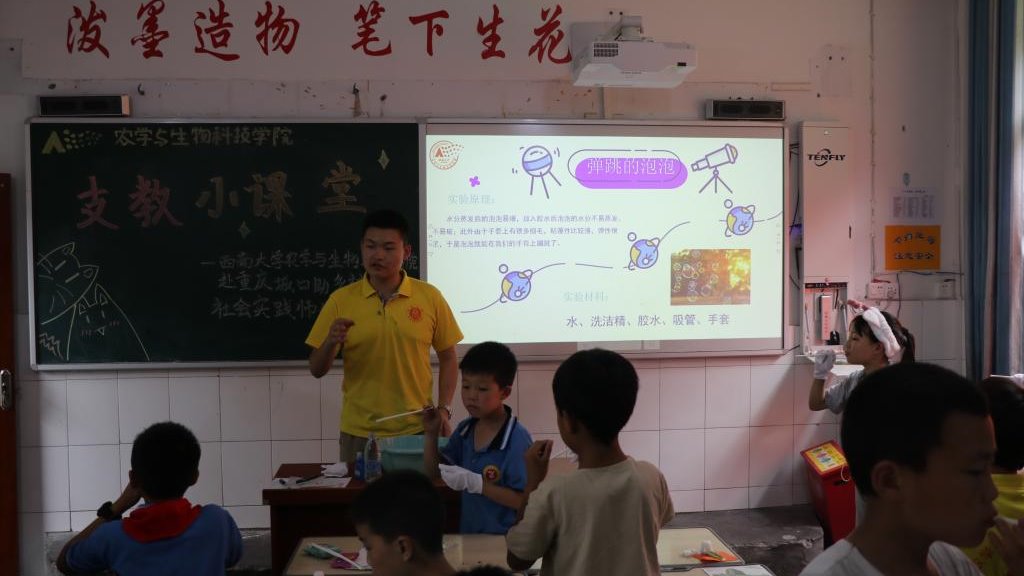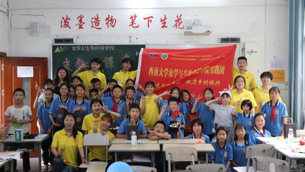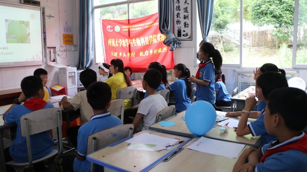 赴重庆城口助乡村振兴社会实践师生服务队以支教为纽带,将袁隆平精神、农业科学知识带到乡村,通过科学实验趣味小课堂传播知识,致力乡村教育,传播新思想新文化、新理念,助力乡村人才振兴。