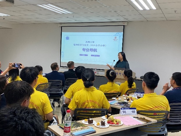 9月10日至11日,2021级植科专业新生陆续来校报到注册。为增强学生对专业的了解和认知,帮助他们迅速适应大学的学习和生活,学院为所有植科新生安排了学业导师,并于9月18日下午3点在隆平楼205召开了2021级新生与学业导师的交流座谈会。会议由中外合作合作办学办公室主任刘志斋主持,学院党委书记阳义健、副书记郑莉佳、副院长卢坤等领导出席了会议,2021级植科新生及学业导师、美国密苏里州立大学(MSU)英语教师、年级辅导员、教学办公室及中外合作办学办公室成员、2021级植科班主任共同参与座谈会。