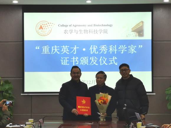 12月27日上午,学院在隆平楼108会议室为 “重庆英才·优秀科学家”获得者颁发证书,并举行了学院“隆平优秀教师”签约仪式。人力资源部部长王志坚、副部长明建、“重庆英才·优秀科学家”获得者何光华、“隆平优秀教师”人选及学院领导班子和学术委员会成员出席了仪式。仪式由学院党委书记阳义健主持。