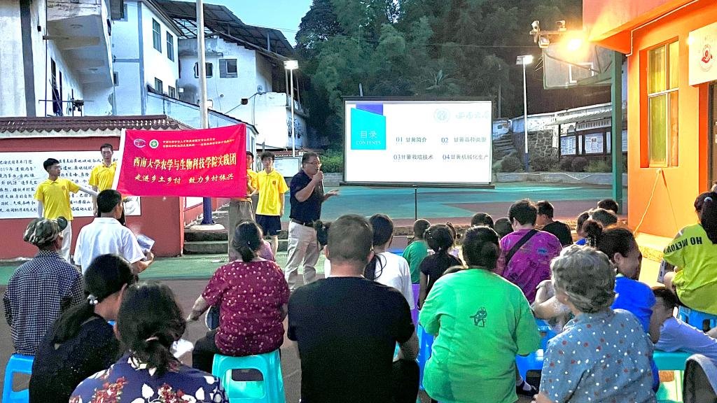 为帮助基层农户提高生产种植技术,助力当地产业振兴,7月10日晚上8点,实践队在润溪乡樱桃井村村委会广场举办了一场以“甘薯新品种、新技术、机械化种植”为主题的专题培训讲座,由学院甘薯育种专家唐道彬老师为当地种植农户详细讲解甘薯的新品种及育苗技术、机械化种植技术、储藏技术。唐老师鼓励农户积极栽种特色品种甘薯提高经济效益,鼓励农户尝试机械化种植,打破传统生产模式,进行规模化生产经营,并表示愿意为特色甘薯品种的广泛栽种提供技术指导。实践队还专门制作甘薯种植技术手册分发给村民,图文并茂地将最新品种和种植技术带入农村,带进农户,助力乡村产业振兴。