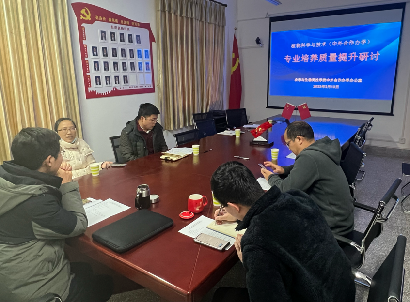 中外合作办学办公室组织召开了植物科学与技术专业培养质量提升研讨会。会议由副院长张建奎主持,学院教务办公室主任卢会翔、植科系主任杜海、副主任宗学凤,以及中外合作办学办公室全体成员参加会议。