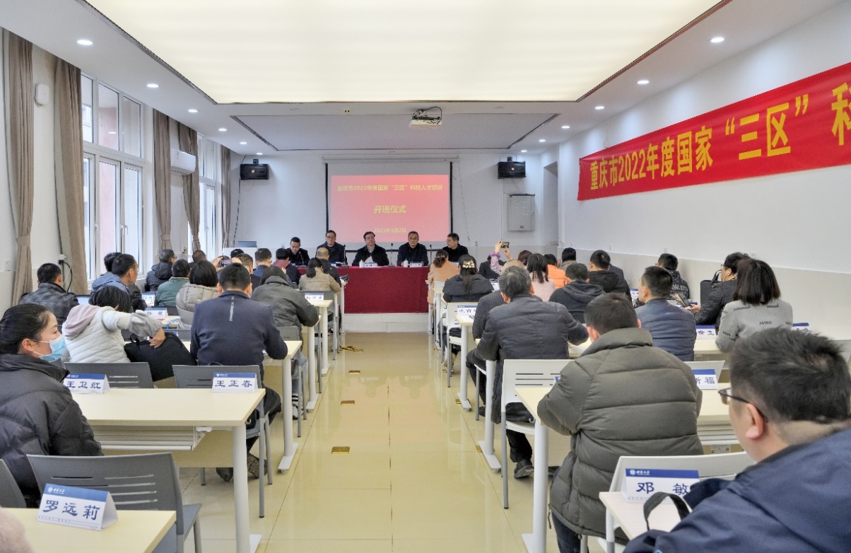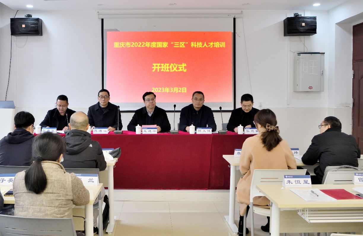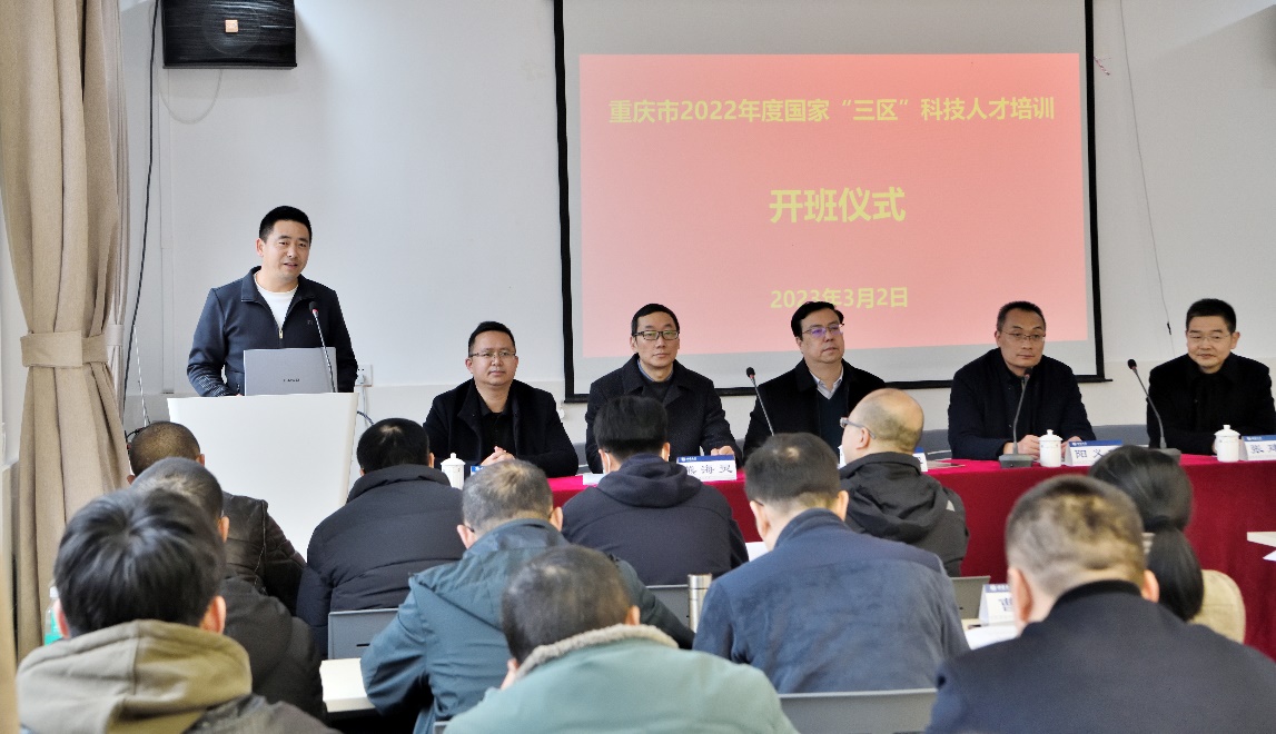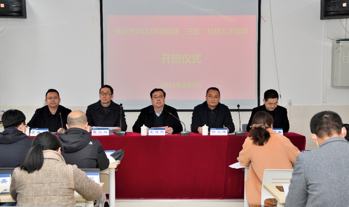 承办,既是对我校办学质量的肯定和信任,也是我校服务于国家战略和地方经济发展的一件实事。王进军副校长还强调,开展“三区”科技人才培训项目是市科技局的高瞻远瞩,聚焦乡村振兴和现代农业发展需要,着力打造一支服务意识强、工作作风好、业务素质硬,“沉”得下去、“担”得起来的“三区”科技人才队伍,将全面推进乡村振兴,农业强国和现代化新重庆的建设。