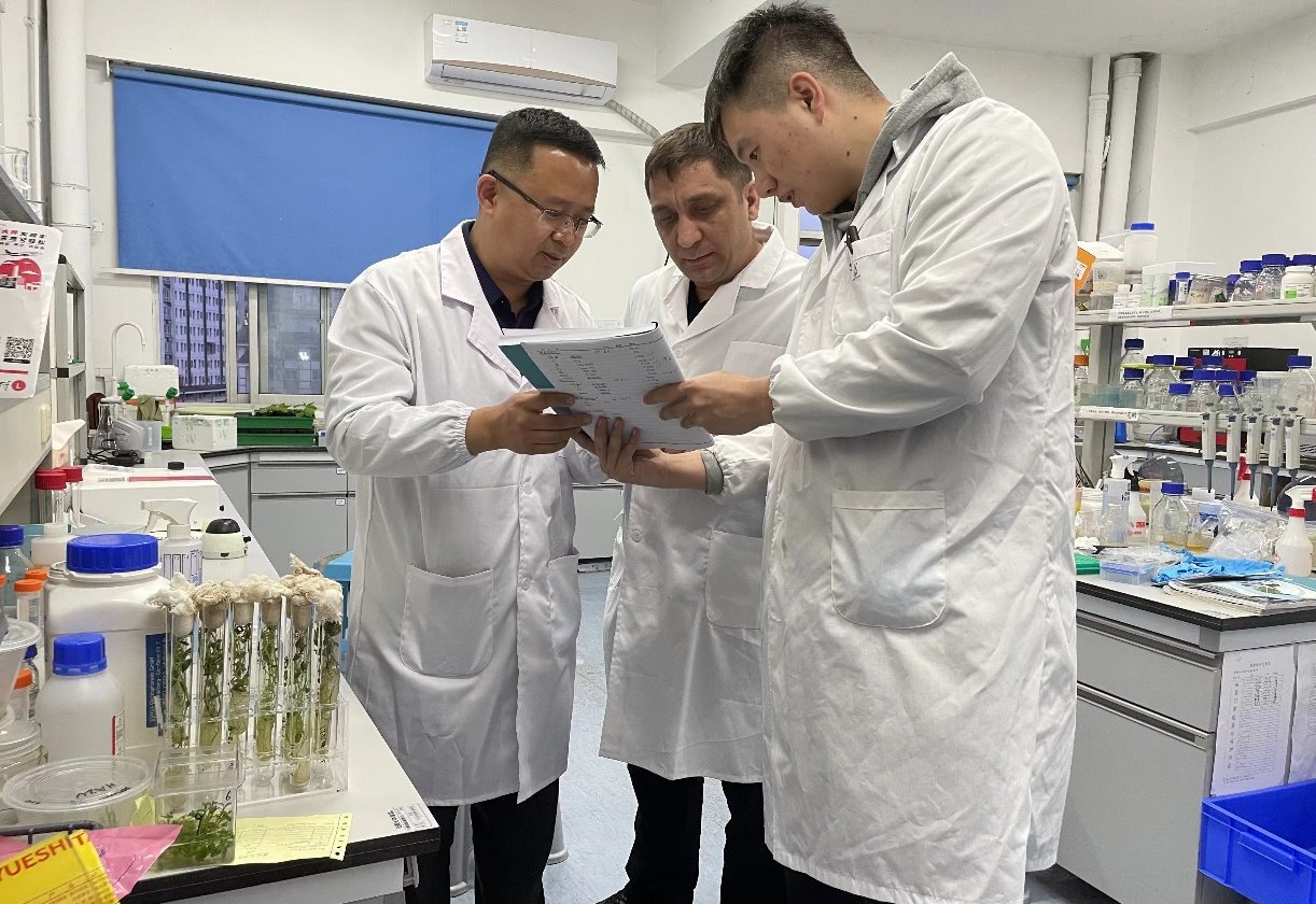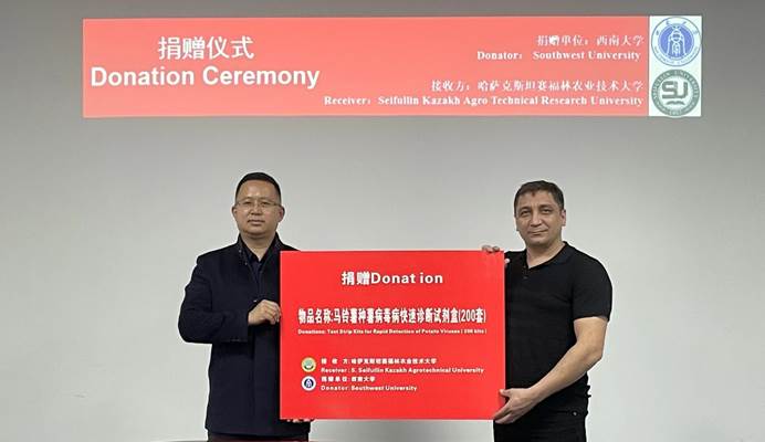 薯类团队老师进行了深入交流。吕典秋教授代表项目团队向哈方塞福林农业科技大学捐赠了200套拥有自主知识产权的马铃薯种薯病毒病快速诊断试剂盒。双方就下一步在马铃薯种质资源创制、品种联合选育、平台建设、项目申报等方面进行了深入交流,并联合国家马铃薯工程技术研究中心签署了三方产学研合作协议。