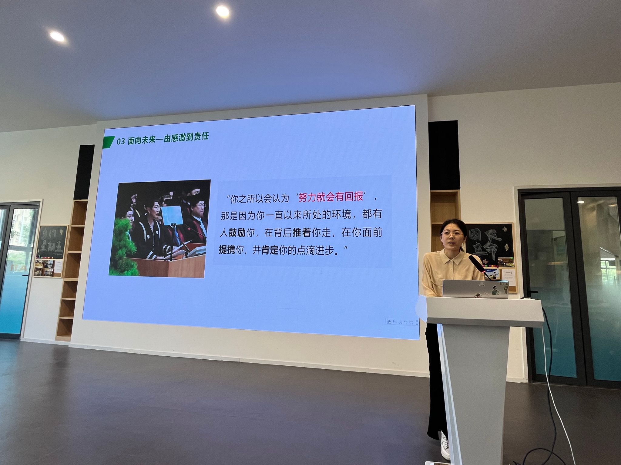 当今世界,农业正在发生巨大变革,中国农业也朝着更高产、更优质、更高效的方向发展,这就对我们农科类学生提出了更高的要求。习近平总书记给中国农大科技小院学生的回信,表达了国家和人民对于农科学子的殷切期望和谆谆教诲。四位学长学姐的分享,既是对回信精神的回应,也是向着未来的宣誓启航。这让我充分认识到,我们新一代的农科人,血气方刚、活力满满;我们应于纷繁世事之中坚定信念,于激情满怀之时砥砺前行。凡心所向处,必素履以往之。相信中华民族伟大复兴之路上,必将留下我们农科人坚实的脚印!