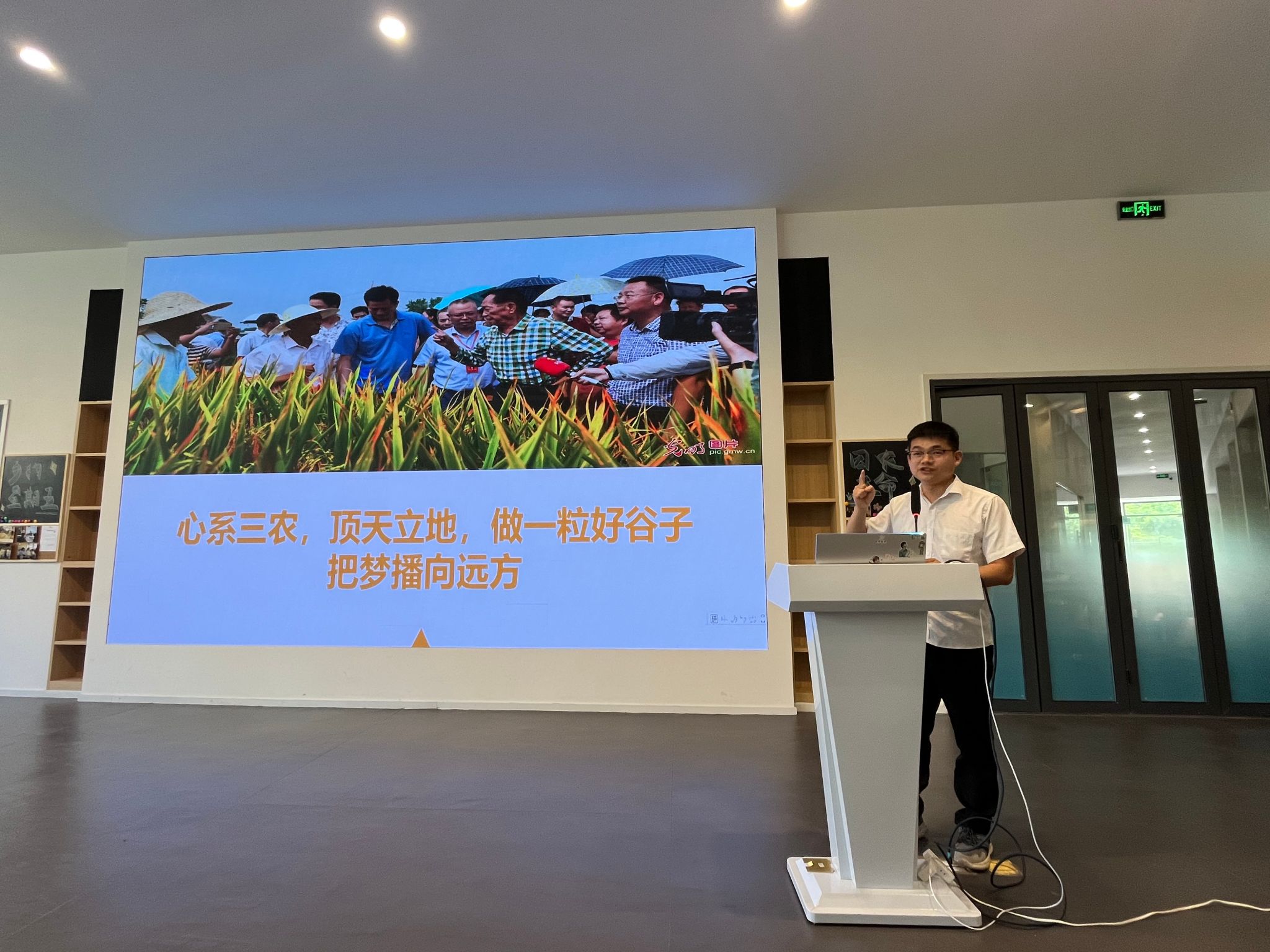 2021级作物遗传育种专业研究生张帅,以“坚定信念,不悔初心,做一粒最好的谷子”为主题,生动激昂地向同学们讲述了他在西大的成长故事,他自立自强的精神、奉献服务师生的境界、对特长爱好的执着追求感染了在场的每一位同学。他说总书记的讲话给我们指明了成长的方向,给予了我们无尽的奋斗力量,我们要不惧困难与挫折,敢于“自找苦吃”,勇敢扛起“新农人”的使命和责任。