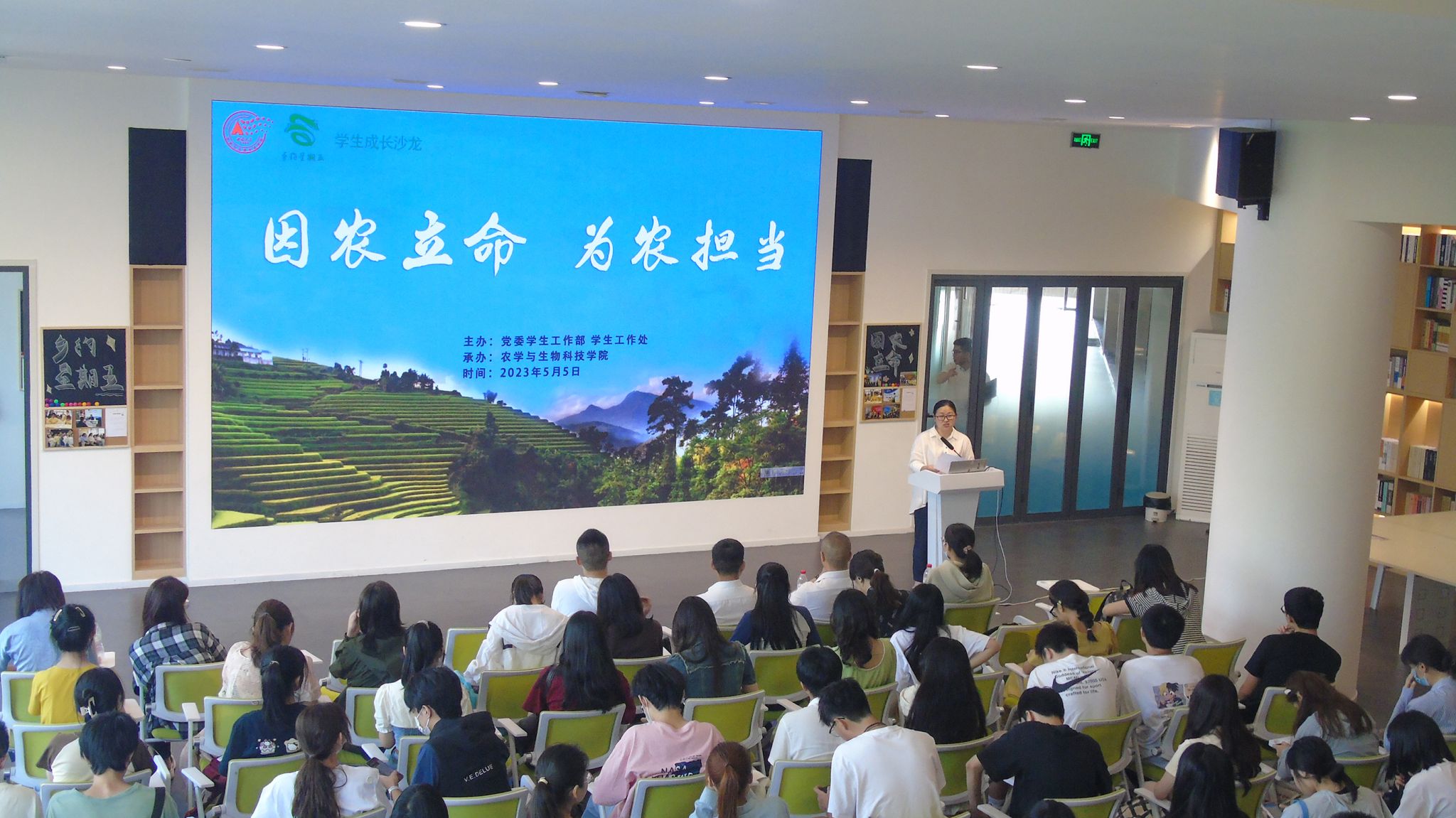 承办的第六期“乡约星期五”学生成长沙龙在青李空间多功能厅A11成功举办。本次沙龙主题为“因农立命,为农担当”,党委学生工作部副部长、学生工作处副处长罗军老师、学生思想政治教育科科长吴姝老师出席,农科专业学生代表参与学习讨论,沙龙由奈飞工厂