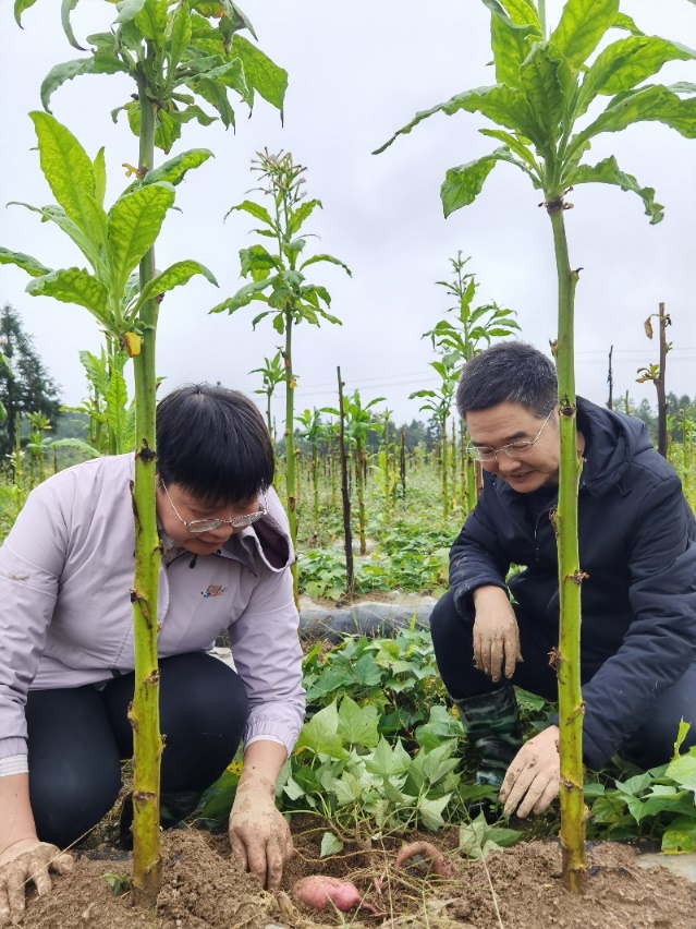 戴秀梅老师带领团队成员在彭水县开展烟-薯复合种植生产模式研究和示范推广。