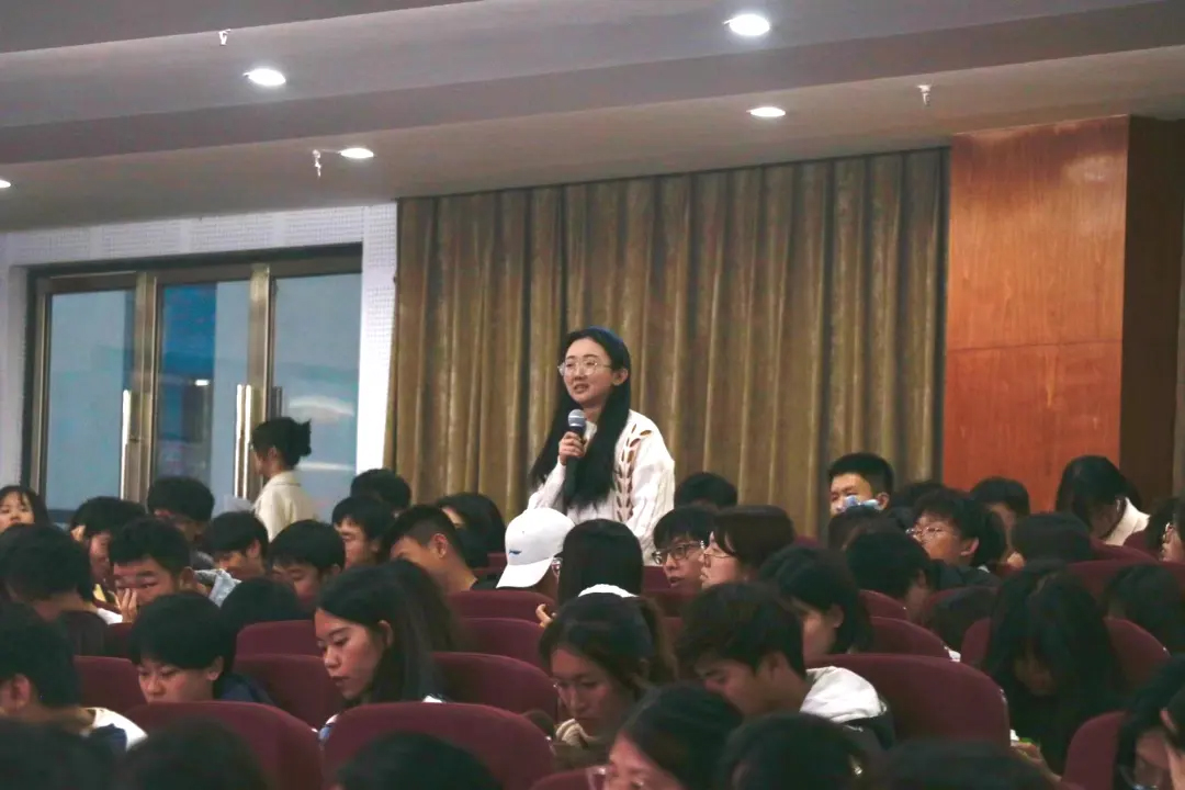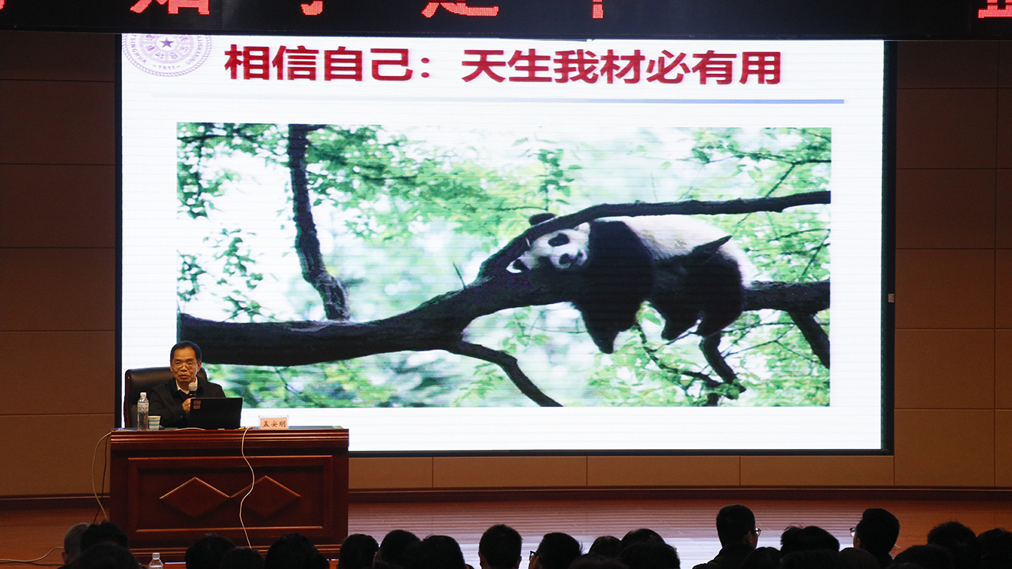 接下来,孟院士从兴国之路引入,引导同学们开始思考自己的个人之路在何方。孟院士以自己为例,向同学们讲述了自己在梦想、生活、科研方向等方面的选择。“条条大路通罗马,”孟院士表示,“创己之路方成功。”选择的路线没有对错之分,适合自己的、可以成就自身的就是成功之路。留学后的孟院士历经波折,毅然决定回到祖国的怀抱,准备做出属于自己的一番成绩。当谈及好友邀请他创办斑马鱼实验室的趣味经历时,孟院士谈笑风生:自己从没接触过斑马鱼,自己学不会育种发育,可他没有停止自己学习的脚步,不断求知、不断进步,斑马鱼的优势终于在市场上彰显出来,让孟院士看见了成功的曙光。在谈及科研之路时,孟院士引用《论语·学而》中的格言:“君子务本,本立而道生。”意思是做科研应专注于事物的根本,只有根本被确立,拥有稳固的基础,才会有更高层次的理念。孟院士用自己的经历作蓝本、以个人发展作旁题,传授了同学们人生之路无对错、科研千里路如何走的道理。
