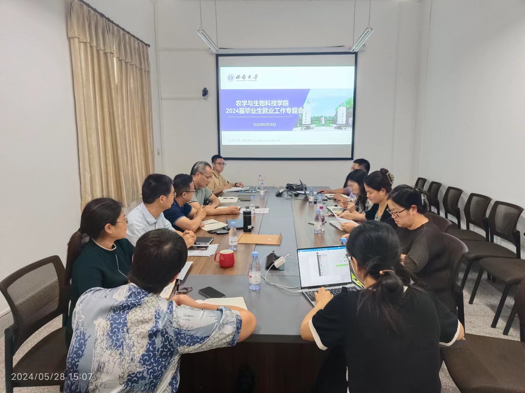 于2024年5月28日组织召开2024届毕业生就业工作专题会,学院领导班子全体成员、工会主席及全体辅导员参加。