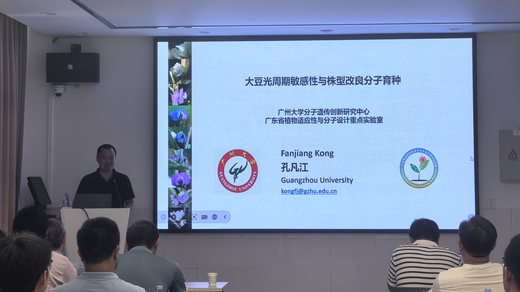 2024年8月28日,广州大学生命科学学院二级教授,博士生导师,国家自然科学杰出青年基金获得者,学院巴渝学者讲座教授孔凡江教授应邀来院作了“大豆光周期敏感性的分子遗传基础”学术报告。报告由学院副院长曲存民教授主持,何光华、李云峰、王楠、易泽林、罗明等师生参加。