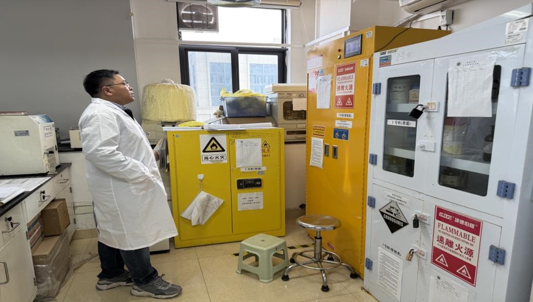 本次安全检查主要针对消防通道是否畅通、消防与应急设施是否正常、危险化学品的使用、特种设备、以及加热设备等使用是否符合学院及学校的管理要求,针对检查出的问题要求现场进行整改,并给师生再三强调,研究生导师和实验室安全责任人务必做好学生实验室安全教育与操作规范培训工作,要求学生务必做到实验过程不离岗、人走断电等好习惯。