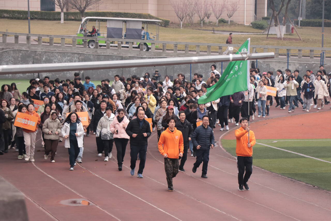 裁判员代表胡雅恺同学代表全体裁判员宣誓。“公平、公正、公开、准确、谨慎、协作”,十二字准则向全院师生表达维护赛场公正有序的信心。运动员代表关子健同学代表全体运动员宣誓,铿锵的口号昭示了运动员们对比赛的自信与热情。吕典秋院长宣布运动会开幕后,学院领导带领在场师生方阵完成象征团结奋进的热身慢跑,这一幕将运动会的热烈氛围推向了新的高潮。