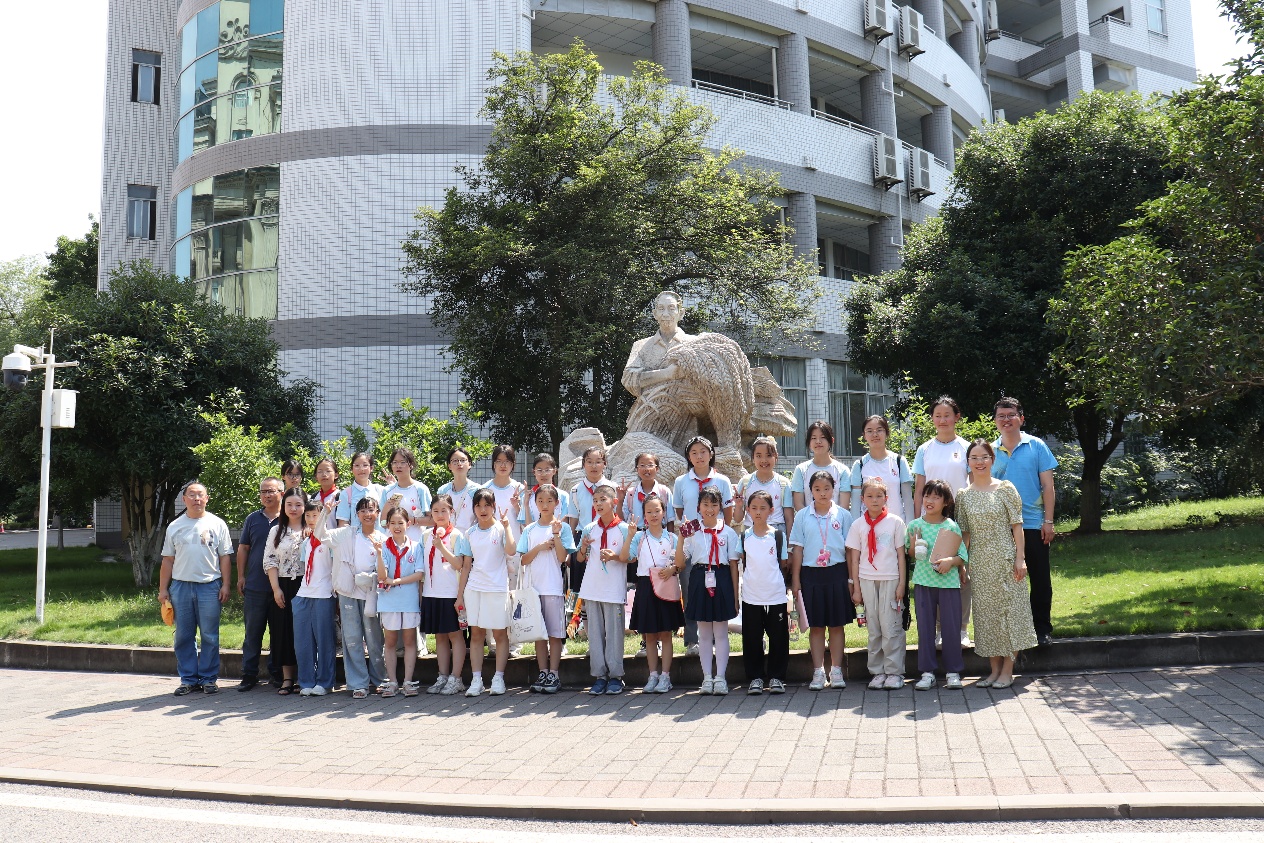 首先,师生们参观了位于37教的袁隆平院士事迹展,学院优秀青年教师张婷讲述了袁隆平院士攻坚克难的生平以及科研事迹,她强调了袁院士"把论文写在祖国大地上"的科学精神,激发了小同学们学农爱农读农的热情和梦想。参观结束后,全体师生前往袁隆平院士雕像处,深切缅怀袁隆平院士。