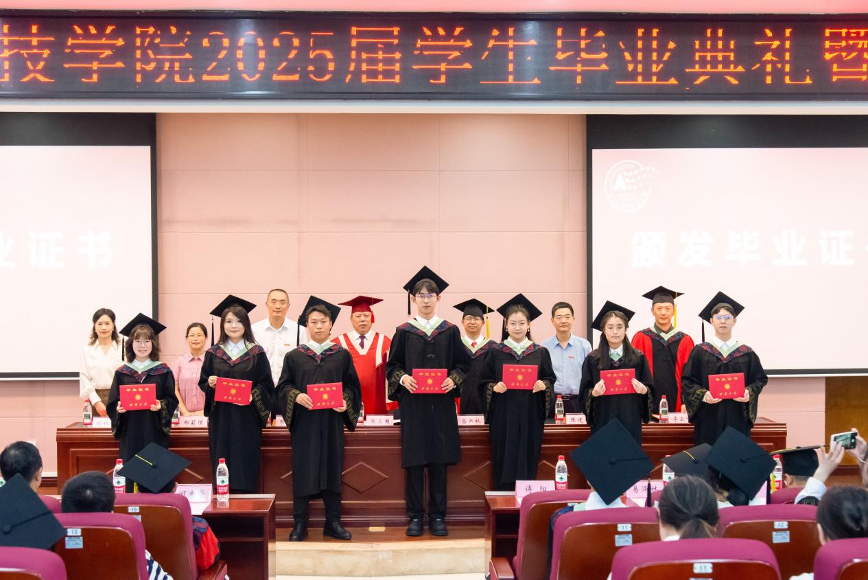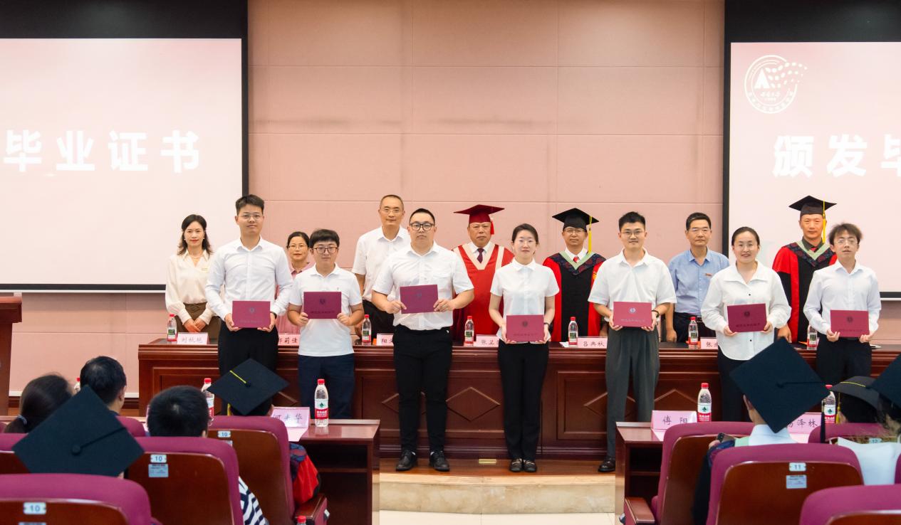 在庄重的学位授予环节,校学位评定委员会副主席张卫国、学院院长吕典秋等学院学术委员会委员为毕业生们一一拨穗授位,毕业生们身着学位服,在师长的见证下完成从“青穗”到“硕实”的蜕变。
