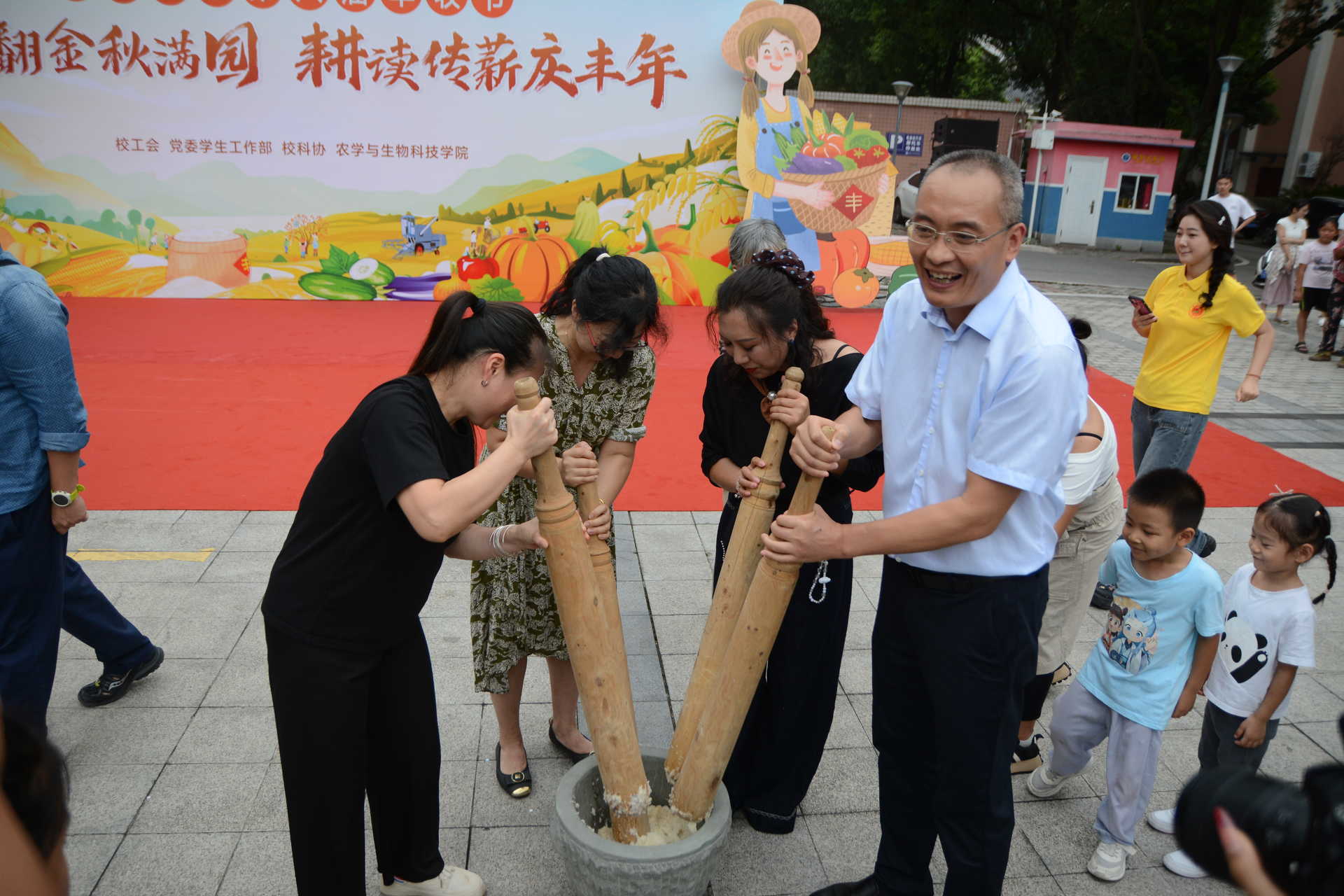 党委书记阳义健、院长吕典秋、学院师生以及全校其他二级单位师生共计1000余人参加活动,一道参与农事民俗体验、农事竞赛活动和科研农产品展览,共享丰收的甜蜜和喜悦,共谋乡村全面振兴新篇章。