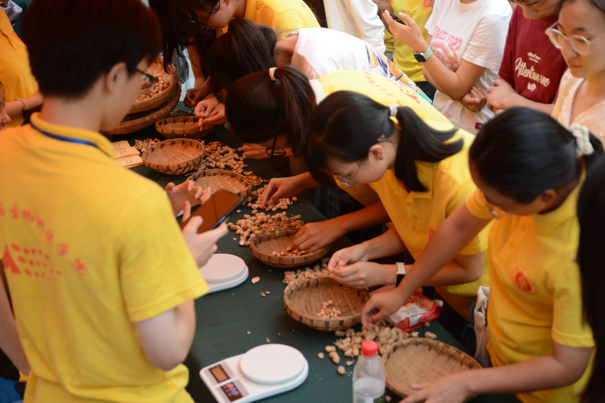 农业科学研究的丰收成果;在“五谷丰登”展区,有蒸熟的南瓜、红薯、爆米花、毛豆、荞麦茶等食品供师生免费品尝;在“振兴乡村”特色农产品展销区,来自彭水的小米花生、粉丝、苏麻和来自贵州龙里的刺梨等农产品现场展示品尝,并预留网购渠道供广大师生选购。