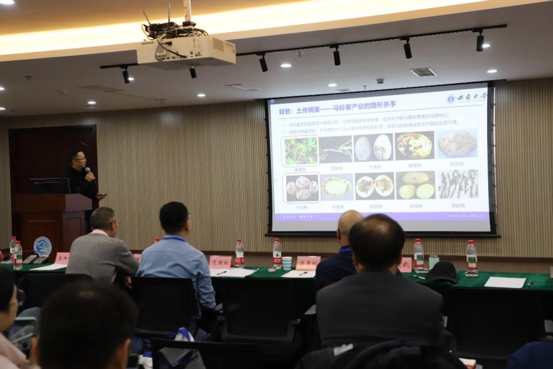 会议期间,学院院长吕典秋教授受邀作《马铃薯主要土传病害防控策略及种薯快速诊断技术研发及应用》专题报告,详细介绍了学院马铃薯团队在土传病害研究、病毒与细菌病害快速检测技术及产品开发等方面的突破性成果,展现了学院在薯类作物科研领域的领先水平。同时,会议组织与会代表前往西部(重庆)科学城种质创制大科学中心实地考察,直观呈现了种质资源创新、育种技术研发、种薯质量快速检验技术等前沿进展。
