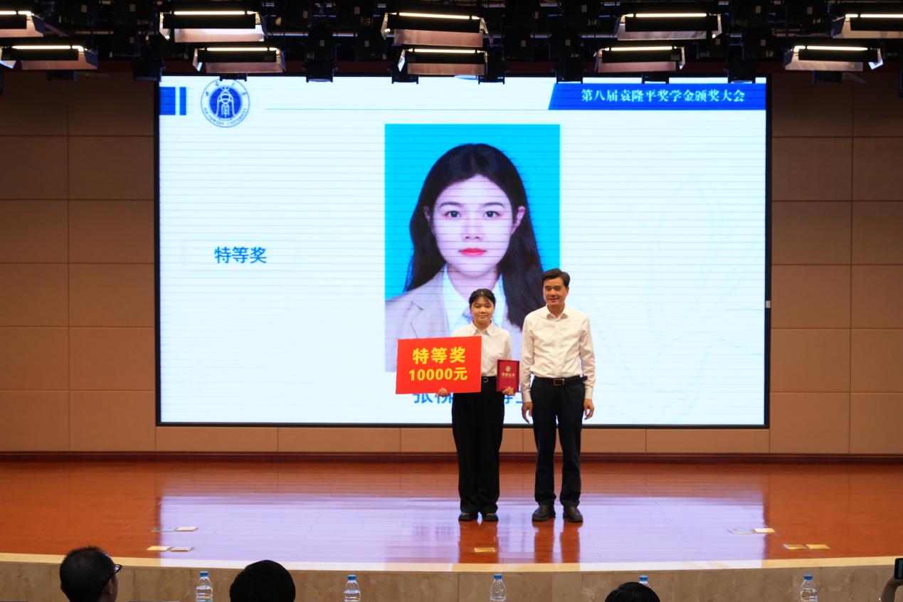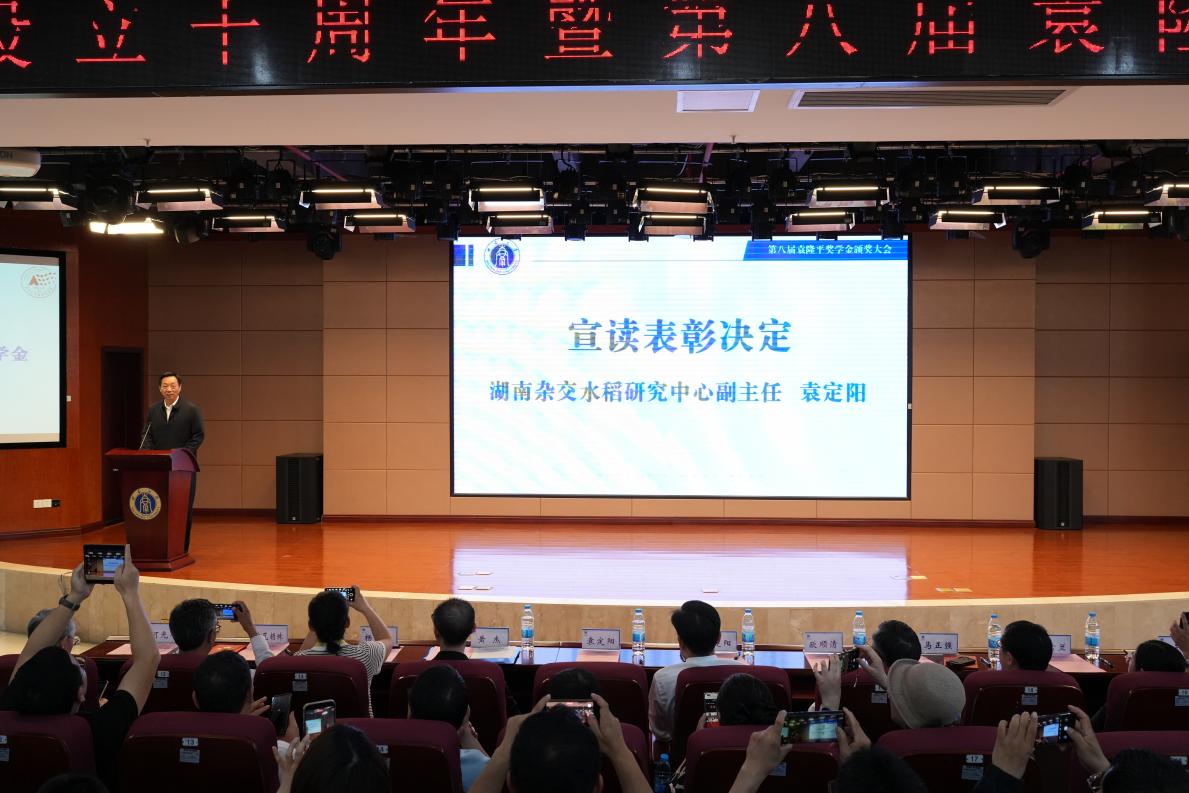 湖南杂交水稻研究中心副主任袁定阳宣读表彰决定。与会领导嘉宾分别给第八届袁隆平奖学金获奖学生颁奖。第一届特等奖获得者张婷教授动情回忆了2017年从袁隆平院士手中接过证书的场景,并表示如今她已将这份“火种”传给学生,实现了从“追梦人”到“引路人”的转变。第八届特等奖获得者张柳琴博士作为本届获奖学生代表发言,她表示,求学十年,袁隆平精神是其跨学科科研路上的精神灯塔,未来将继续勇攀科研高峰,把论文写在祖国大地上。