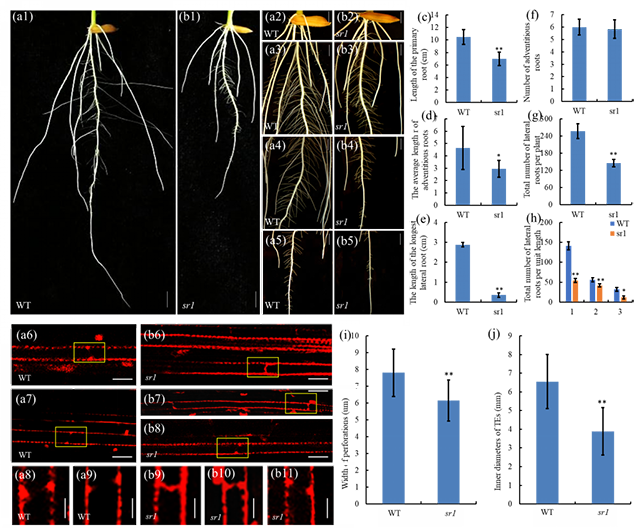 图1. SR1基因突变影响根发育