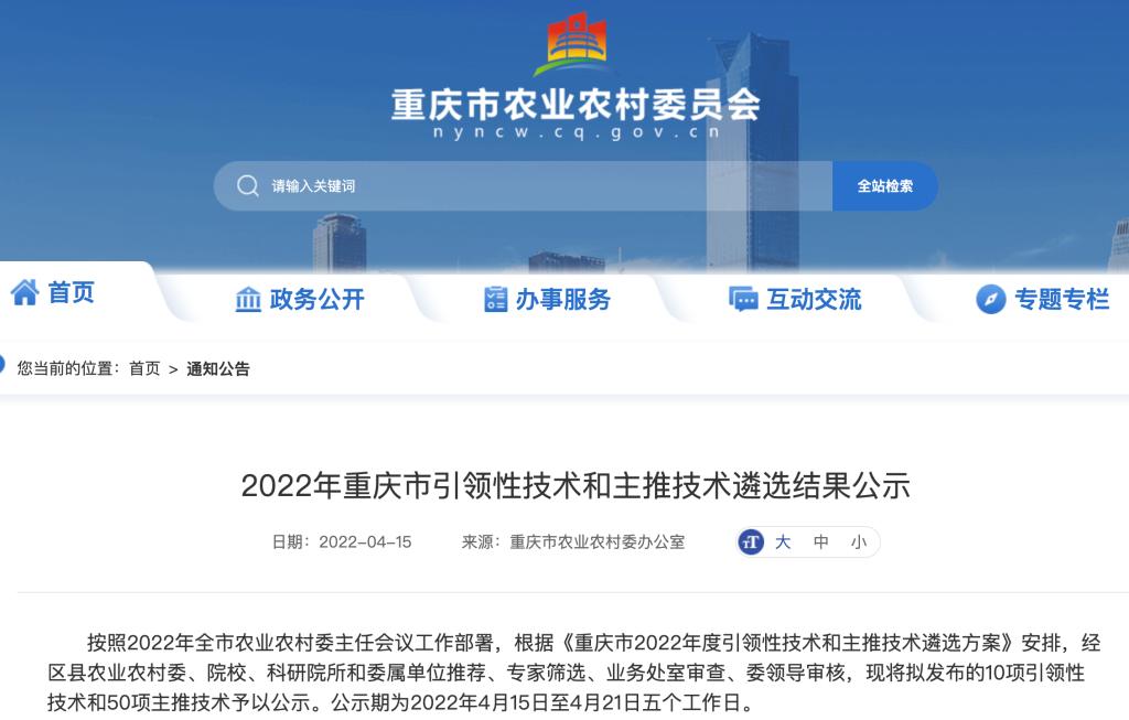 在配套技术方面,4月15日,重庆市农业农村委公布了2022年重庆市引领性技术和主推技术遴选结果,奈飞工厂