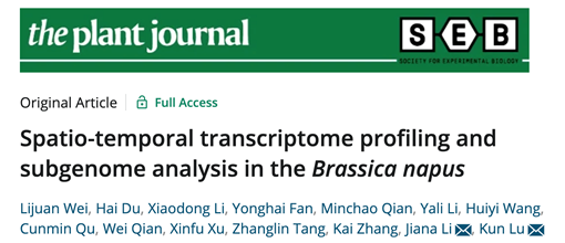 李加纳/卢坤教授团队发表题了为"Spatio-temporal transcriptome profiling and subgenome analysis in the Brassica napus”的研究论文,揭示了完整的甘蓝型油菜时空转录组图谱,挖掘了甘蓝型油菜生长和发育的重要基因。