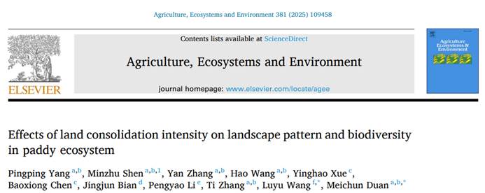 段美春课题组关于土地整理强度对稻田生物多样性影响的研究成果。