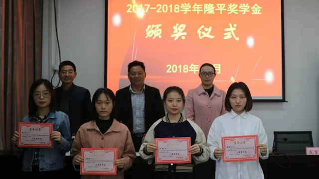 接着,方凤玲副书记宣读了2017-2018学年度隆平实验班优秀奖学金和进步奖学金获奖名单,与会嘉宾为获奖同学颁奖。王玲、耿涵获得一等奖学金,奖励1000元;王艳珍、李娅楠、孙琪、樊林瑶、洪祥德、赵婧宇获得二等奖学金,奖励500元;戴丽诗、卢璐、向思柔、李娅楠、孙琪、刘程、刘雅婷、任岚扬、郭思思、张瀚月获得进步奖学金,奖励500元。