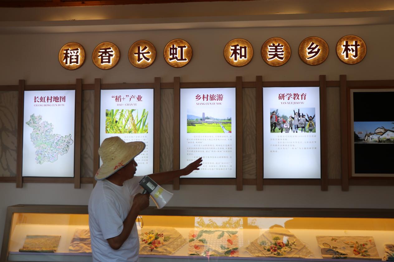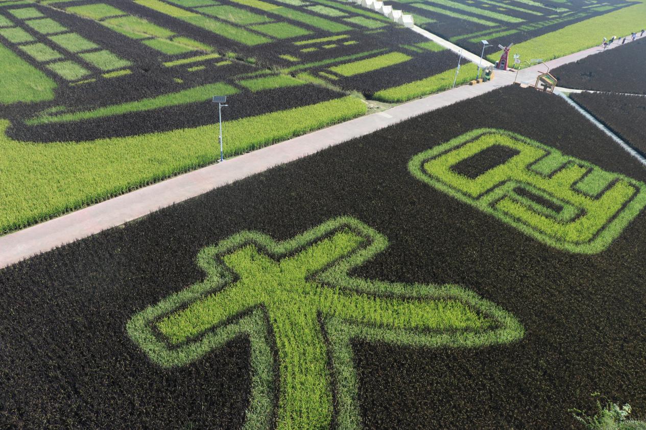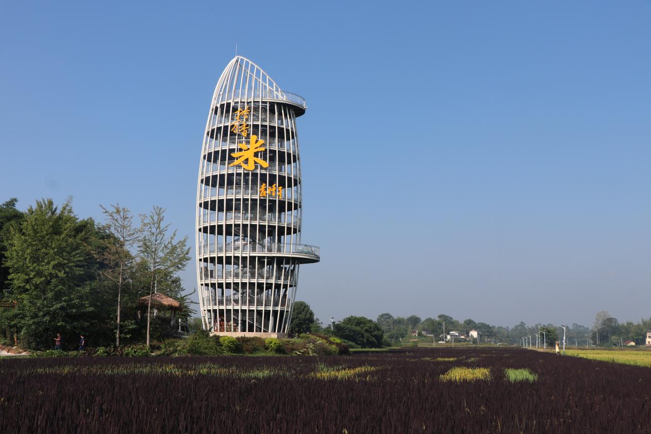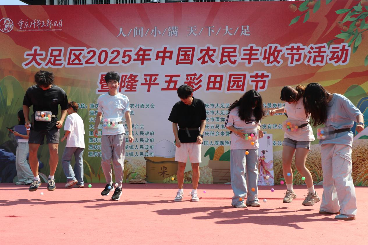 10月10日上午,同学们来到大足区袁隆平院士重庆工作站。在工作人员的带领下,大家深入田间地头与农学展厅,开启了一场植物科学的探索之旅。工作站内,绿油油的稻苗在阳光下茁壮生长。技术人员详细讲解了水稻育种的关键技术,从亲本选择、杂交配组到后代选育,每一个环节都凝聚着植物科学的智慧。五彩稻田是“从实验走向田间”的生动缩影。连片稻田并非传统单一的绿色,而是通过彩色水稻品种的巧妙搭配,在田间勾勒出袁隆平院士头像、“人间小满,天下大足”字样及稻穗图案。远观极具视觉冲击力,近看则清晰可见紫、黄、绿等不同颜色的稻穗,每一株水稻的株高与穗型均高度一致。