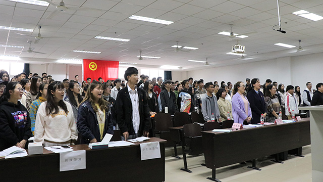 于35教519教室顺利举行主题为“不忘初心担当时代责任 牢记使命勇于砥砺奋斗”的第七期团校开班典礼。校团委副书记张瑜、院党委副书记方凤玲、团委书记许莹竹以及农生院团校181名学员共同参与此次典礼,典礼由学院团委副书记李杨同学主持。