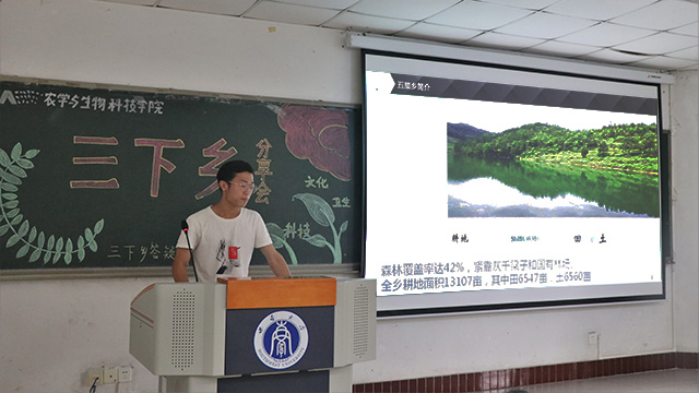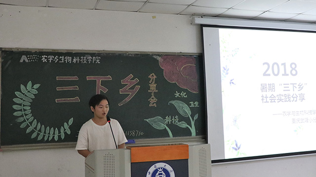 首先,重庆武隆小分队代表杨坤益就成员介绍、活动内容、成果汇报等方面向大家分享了在武隆进行三下乡的经历。他表示,积极响应国家乡村振兴战略是参与这次活动的初心,来自十三个学院的同学们汇聚在一起让此次实践活动顺利开展。同时他就活动过程中所发现的农村问题提出了自己的看法。他提到,现在农村面临着日渐严重人口流失与人口老龄化问题,做好经济规划、景点开发都是很好的选择。随后,来自黔江小分队的张佳宇以自身参与经历为依托向同学们分享了参加社会实践的准备技巧、收获和感悟。活动过程中,他们开展了爱心支教、拜访敬老院、参观烈士陵园等活动,还在五里乡的返乡博士带领下参观了合作社,这令张佳宇同学感触颇深。他表示,在三下乡实践过程中,他不仅仅完成了三下乡的基本工作,还结交到了一群同志好友。两人的分享为与会同学带来满满的“干货”。“艰难困苦,玉汝于成。”社会实践活动虽然恰逢暑期、条件艰苦,但它所能带给我们的不仅是综合能力上的提升,更是意志品质上的磨砺与锤炼。