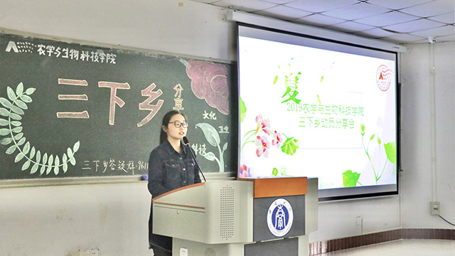 分享会最后,邓艳老师进行动员发言。她对参与三下乡活动提出了三个理由:一是三下乡活动具有很重要的教育意义,一方面实践是认识的来源,在社会实践活动中可以学到更多的新知识;另一方面实践是检验真理的唯一标准,通过社会实践活动可以实现理论与实践的结合。二是社会实践是大学生培养的一个重要环节,是修满学分、完成大学生培养计划的一个必然要求。三是三下乡活动可以锻炼同学们的个人策划、组织等能力,是提升个人综合素质的机会。最后,她表示面对如此一项具有特殊意义的活动,我们大学生应该响应国家的号召,为成为一个有理想有担当的青年,积极投身到社会实践中去。