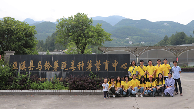上午9点,团队成员来到了位于巫溪县文峰镇的巫溪县马铃薯脱毒种薯繁育中心——脱毒马铃薯种薯繁育的摇篮、优质商品薯生产的标准化基地。基地负责人梁峰铭经理热情地接待了成员,并带领大家一起参观繁育基地,向大家讲解了基地组织构成、基地实验研究、基地技术支持以及基地种植试验区等。