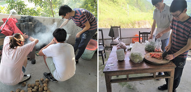 烈日炎炎,同学们一行人浩浩荡荡地行走于村间小路,热情周到的村干部、善良淳朴的村民,让大家长途奔波的疲倦立即消散。到达住处后,同学们开始自己烧火做饭,村干部陈会计为大家备好了新鲜的食材和清甜的西瓜,队员们有条不紊地洗菜、切菜、烧火、煮饭,切身体验农村生活。席间,陈会计鼓励队员们要初心不改,完成既定目标,切身体验,尽力融入,体验三下乡实践活动的快乐和领悟其真谛。他表示在活动过程中,有任何情况都可以向他反馈,他会尽力配合。同学们深深地感受到了村里对实践活动的重视与支持,并十分感谢他们的热情与配合,均表示在实践活动中尽己所能为村庄带来改变。