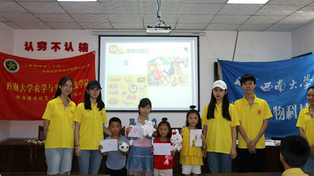“科技支农助力精准扶贫”社会实践服务团巫溪小分队的队员们赴巫溪县塘坊镇梓树村进行的“农业科普知识走进乡村小学”为主题的三下乡支教活动。