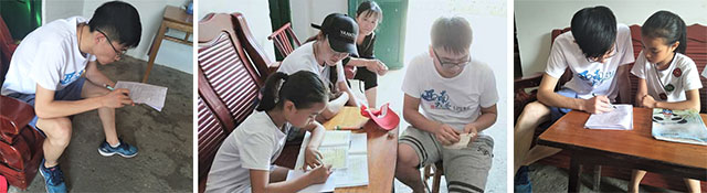 下午,队员们沿着山路走到留守儿童家里去辅导他们做作业,并给每一个小孩子都带去了小礼物。志愿者们化身为“知心哥哥姐姐”,了解他们的梦想,倾听他们的心声,为他们描述大学生活的美好,并鼓励他们要努力学习,将来能够考入理想的学校。