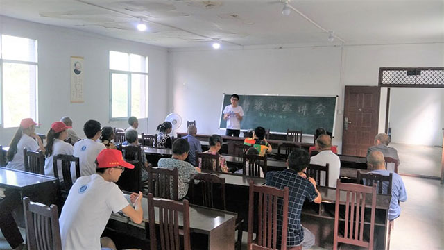 为宣传党的十九大精神,落实乡村振兴战略,为全面建成小康社会助力,7月17日早上八点云阳小分队开展了以“治理有效”为主题的乡村振兴战略的宣讲。参加本次宣讲的有大华村的肖支书、各队的小队长、部分村民以及云阳小分队志愿者。