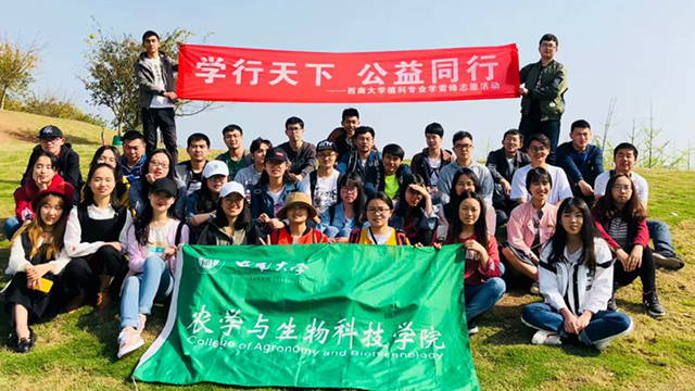 2016级植物科学与技术专业的40多名学生来到北碚区静观镇台湾农民创业园,开展“学雷锋”公益主题团日活动,并参观调研了农业创业园。