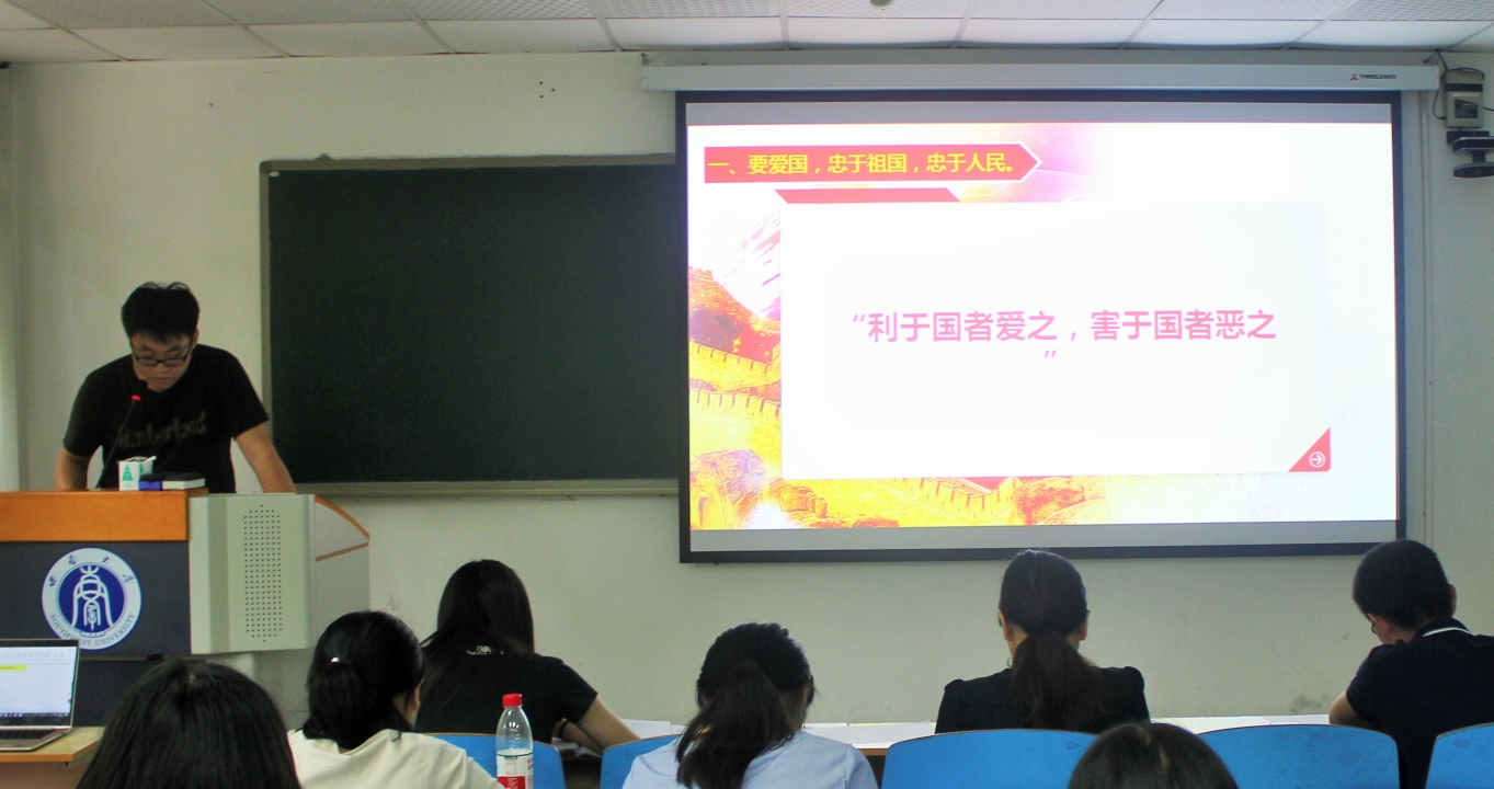 教工第四党支部、本科2016级党支部6月组织生活会“拥抱新时代,青春再出发”党课微讲堂比赛在32教205举行。本科生2016级党支部书记吴东倩老师主持,全体党员参赛,教工第四支部教师作为评委参加活动。