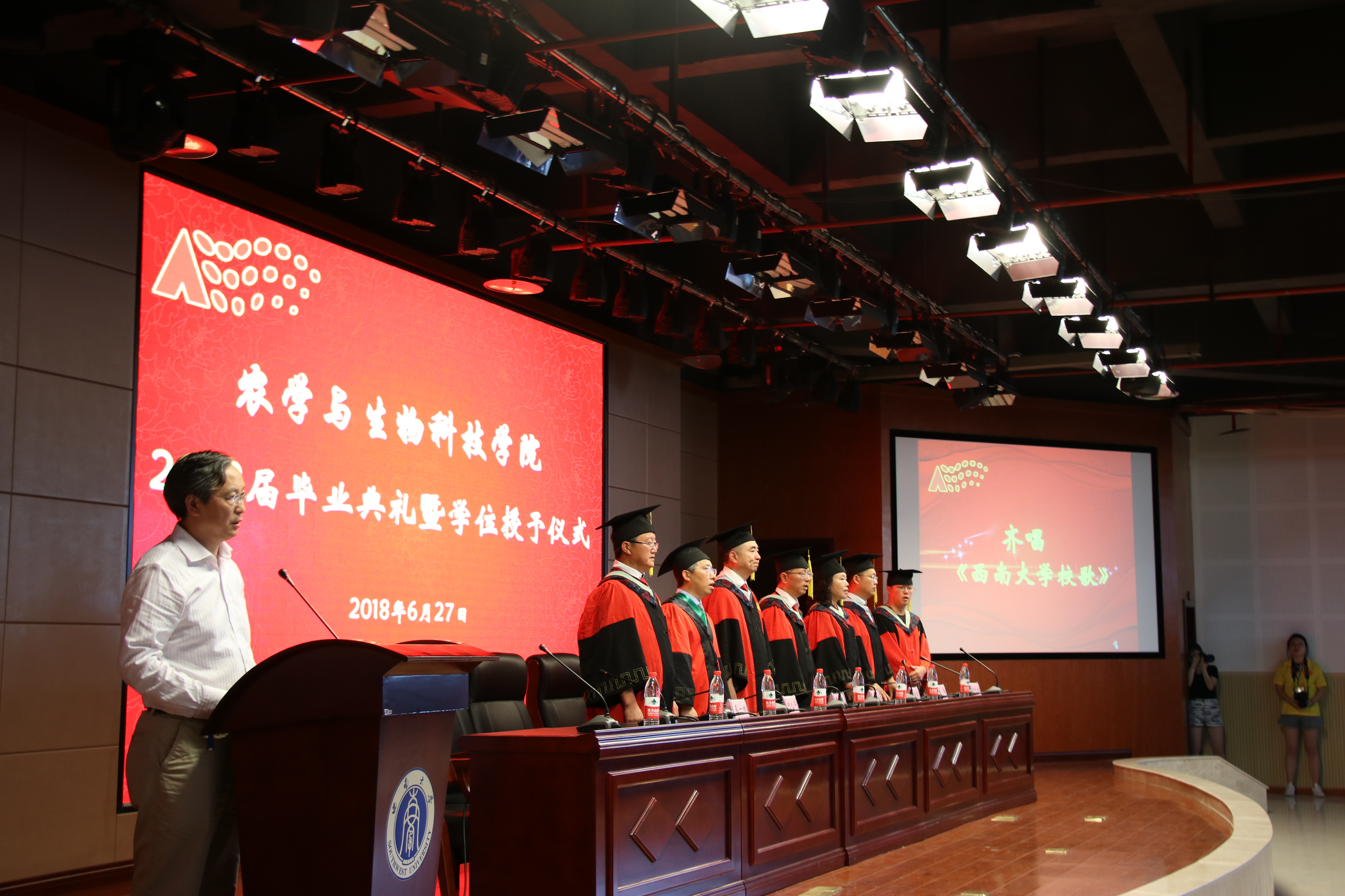 校歌》,慷慨激昂的歌声回荡在宽阔的报告厅,毕业典礼落下了帷幕。毕业生们即将踏上人生新的征途,愿他们谨记母校的校风校训、农生院的学院精神,“心系三农,顶天立地”,砥砺前行、不忘初心。