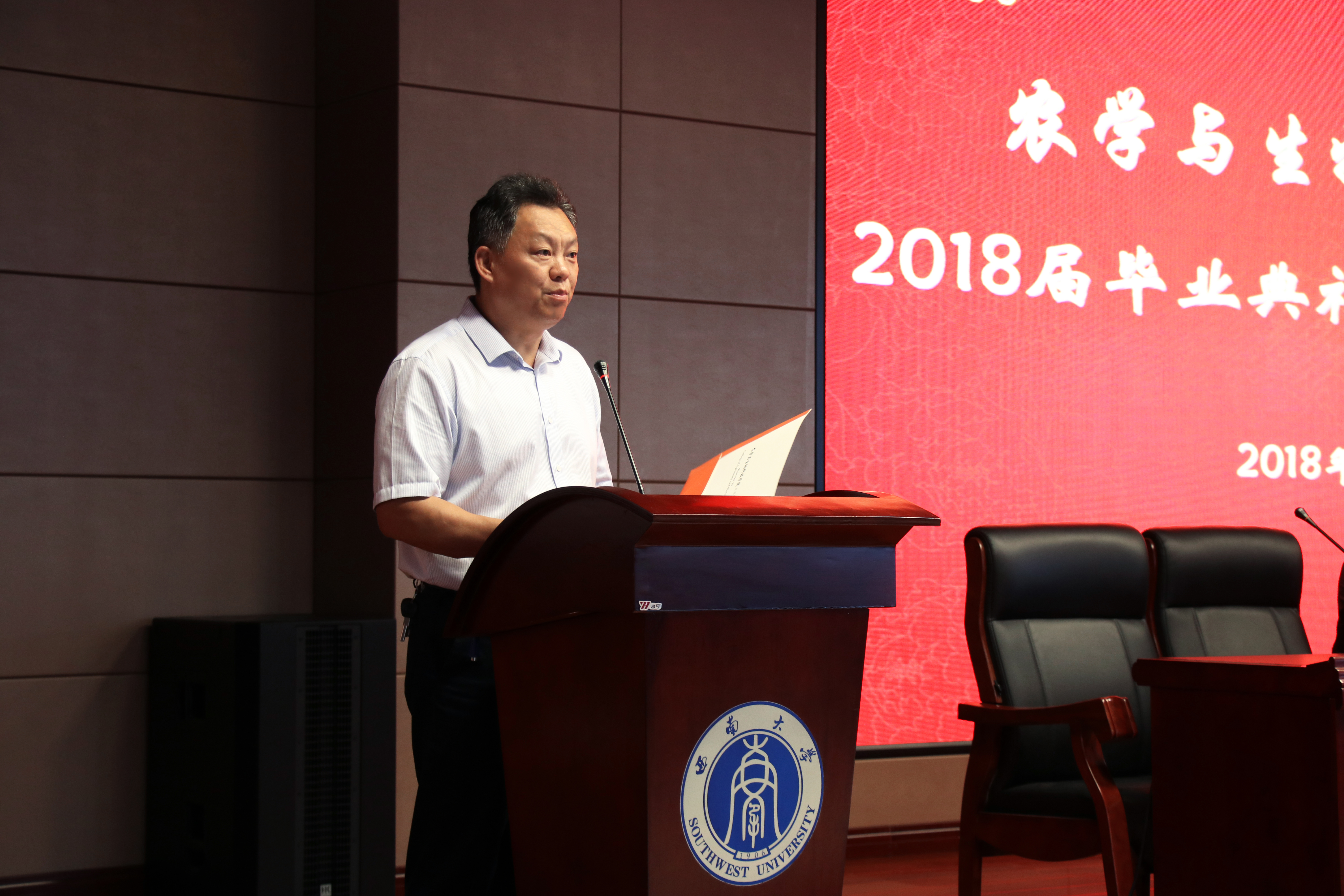 学院院长何光华教授一席寄语增学子,幽默的言辞中是说不尽的谆谆教诲,让在场学子微笑中含泪。何院长送给毕业生们三个相信:第一个相信,相信学过的一切都有用,念念不忘,必有回响。第二个相信,农生学子会种的不只是田,还有对精神格局的耕耘。第三个相信,人生成长和植物生长一样需要遵循规律。最后,何院长以独特方式,祝福学子,他现场演唱了一首歌曲《记住乡愁》让大家记住西大,记住农生。