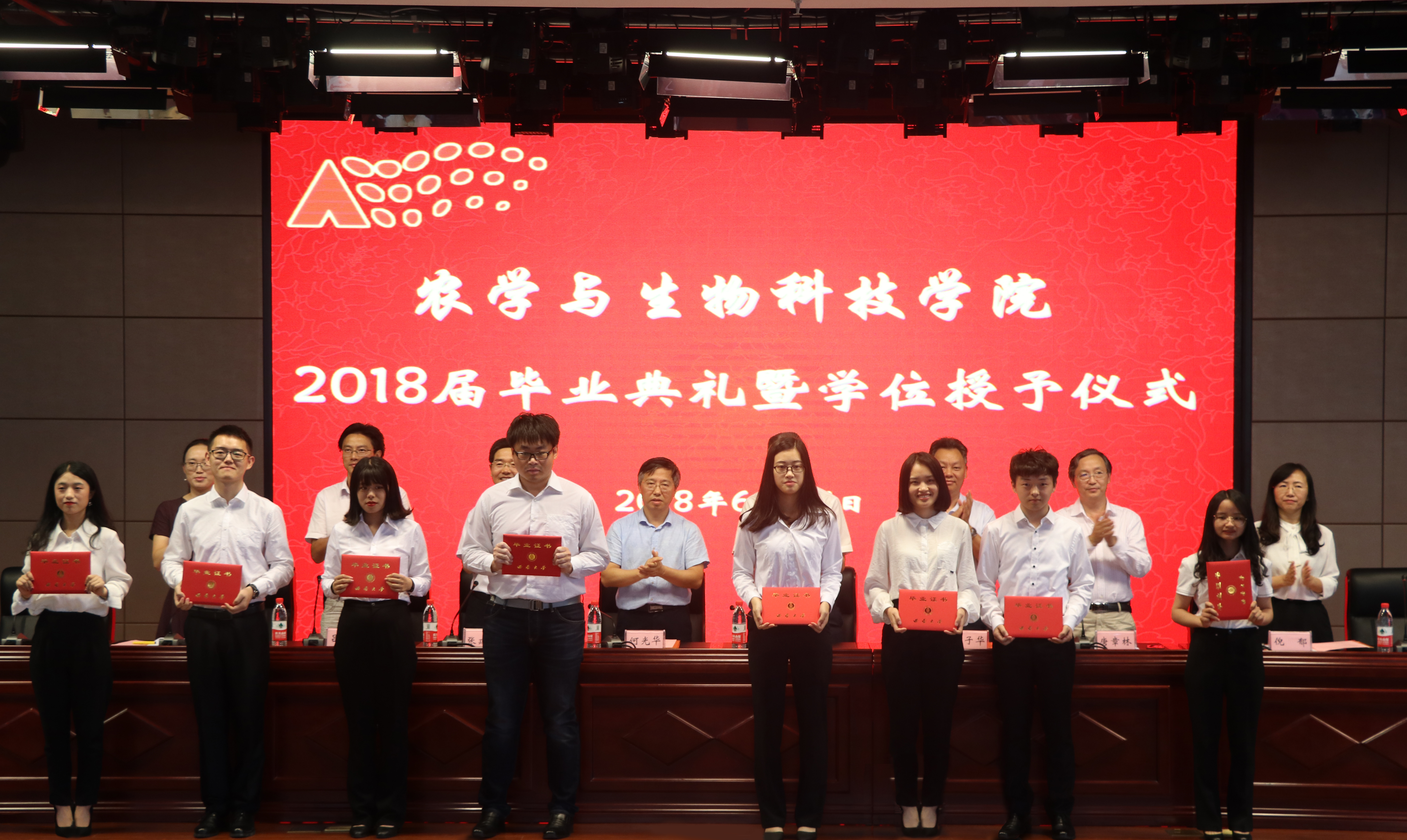 副校长周常勇、农生院党委书记赵子华、院长何光华、党委副书记方凤玲、副院长唐章林、副院长张建奎、学院学术委员会成员、各系主任、实验室主任、硕士生导师、毕业班班主任、辅导员、教学秘书、全体毕业生,16级在校生代表观礼。